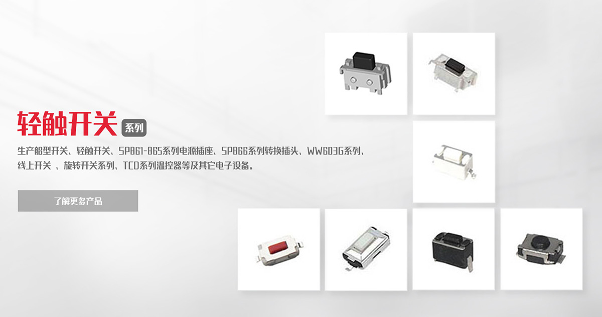 致力于船型開(kāi)關(guān)、負(fù)載開(kāi)關(guān)、輕觸開(kāi)關(guān)、微動(dòng)開(kāi)關(guān)等產(chǎn)品的研發(fā)、制造、銷(xiāo)售。
